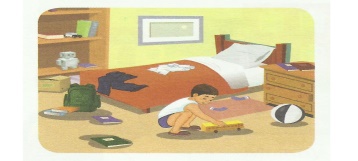 3.Айтылым.Көрсетілім арқылы суретке назар аудару. Алдымен оқушыларға сюжетті сурет бойынша әңгіме құрастыруға тапсырма беру. 1. Сюжетті сурет бойынша әңгіме құрастырту. 1-сурет бойынша: –Бала не істеді? – Бала киімдерін іздеді. 2-сурет бойынша: – Ол қайда асықты? – Ол мектепке асықты. 3-сурет бойынша: – Бала сабаққа үлгерді ме? – Бала сабаққа кешікті. «Ол қандай оқушы?», «Сабаққа кешігуінің себебі неде?», «Сендердің күн тәртіптерің қалай құрылған?» сұрақтары арқылы сюжетті суреттегі негізгі ойды анықтату .
