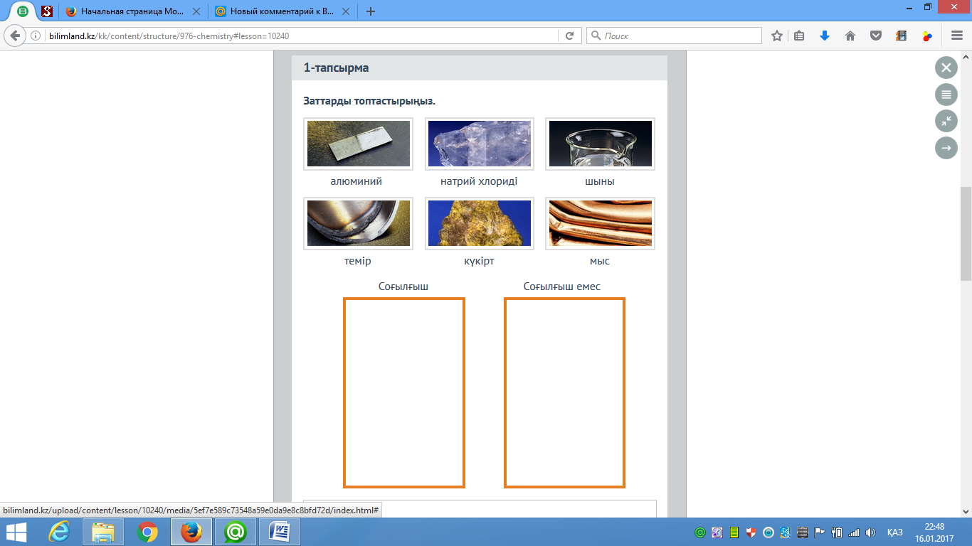 Негізгі сөздер мен тіркестер: металдар, сілтілік метал, сілтілік-жер метал |