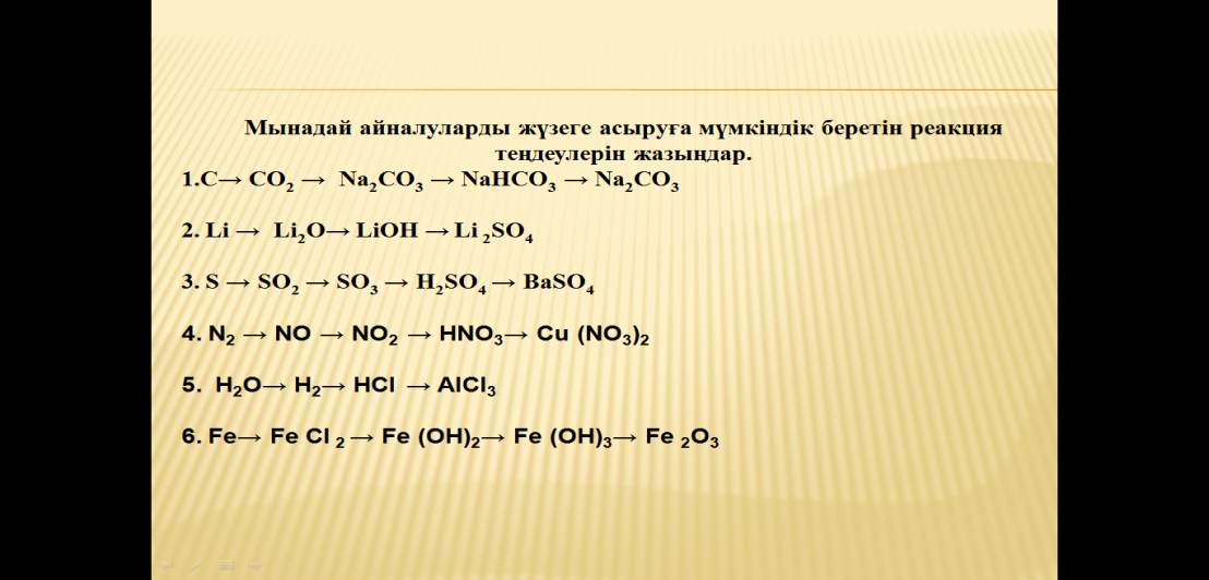 Дискриптор: Айналымды жазады. Реакция теңдеуін жазып теңестіреді |
