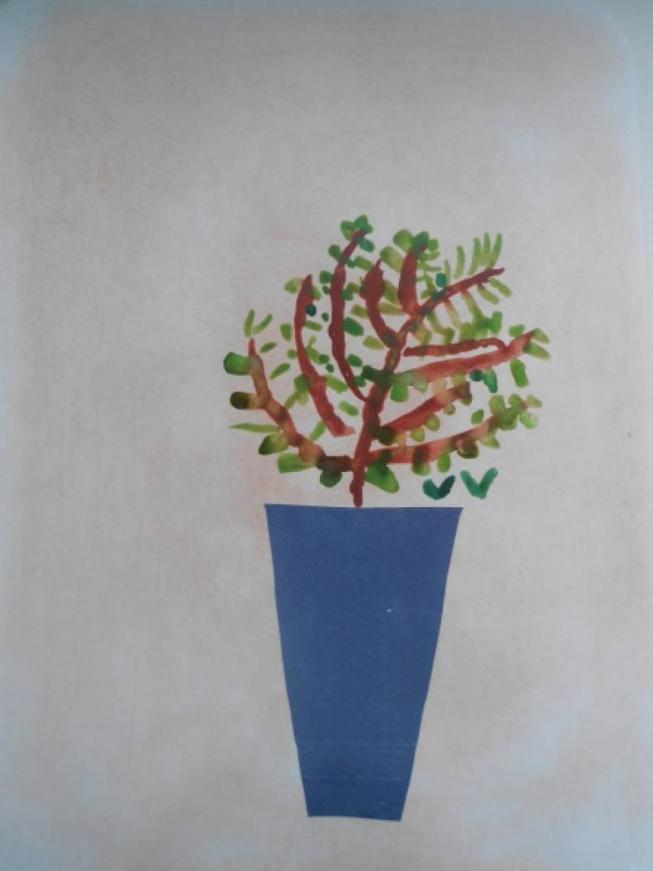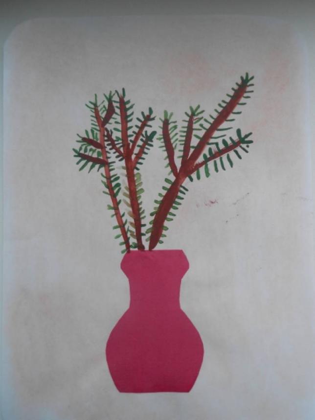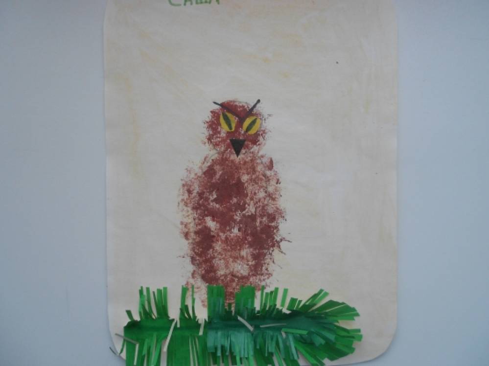 вырезанные из цветной бумаги листья, зелёный фломастер, клей.