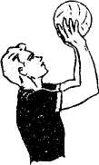 Рис.5(а) Передача мяча сверху двумя руками, стоя спиной к цели (назад за голову)