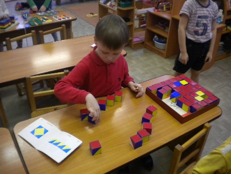 -один материал - один ребенок, чтобы иметь возможность сосредоточиться. Если игра уже занята, другой ребенок ждет, наблюдает. Наблюдение - важный способ познания.