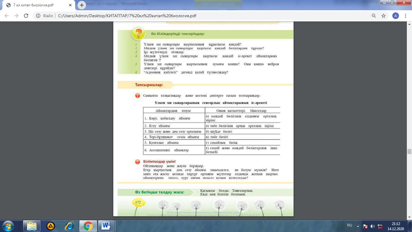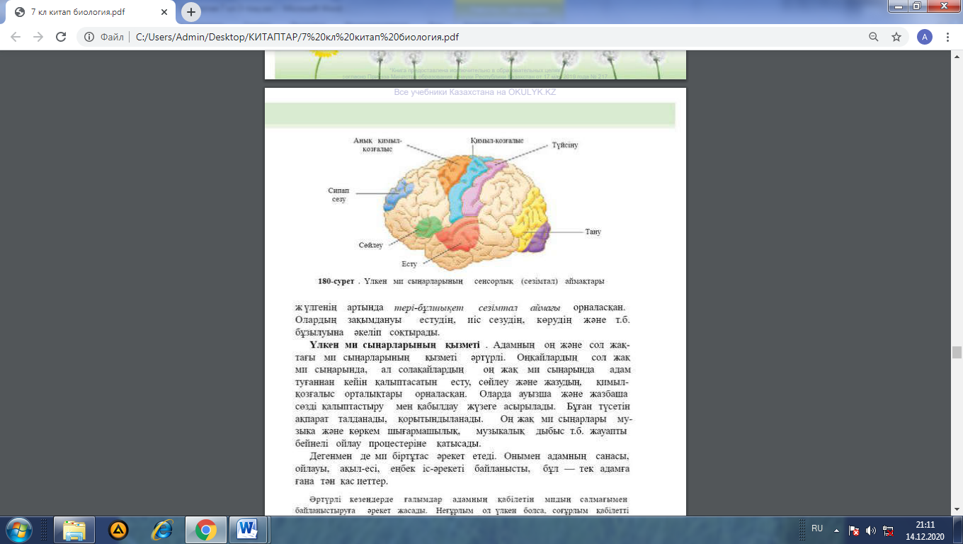 2-Тапсырма Үлкен ми сыңарларының сенсорлық аймақтарының іс-әрекетімен танысып, оларды талқылайды.