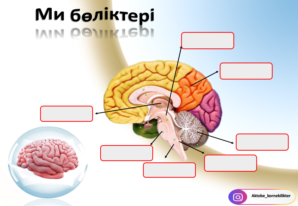 тапсырмадағы мидың құрылысын дұрыс ретімен сәйкестендіріп, құрылыс
