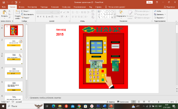 Оқушылар банкоматқа карточка салып, кодын теріп, ақша алу мақсатында сұрақтарға жауап береді Әр топқа моделдеу беріледі. Берілген тапсырманы сәйкесінше дұрыс нұсқасын қойып орналастырады