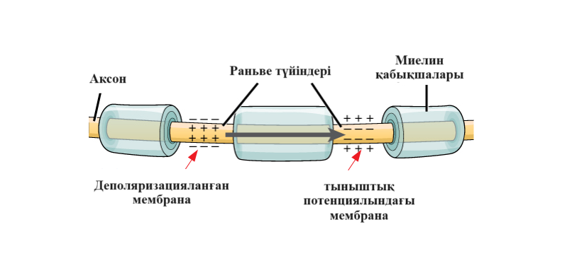 "Секірмелі өткізгіштік" құбылысы: Миелинді нейрондарда импульс Ранвье түйіндері арқылы секірмелі түрде қозғалады. Бұл тек жылдамдықты арттырып қана қоймай, импульсті жоғалтпай сақтауға көмектеседі.