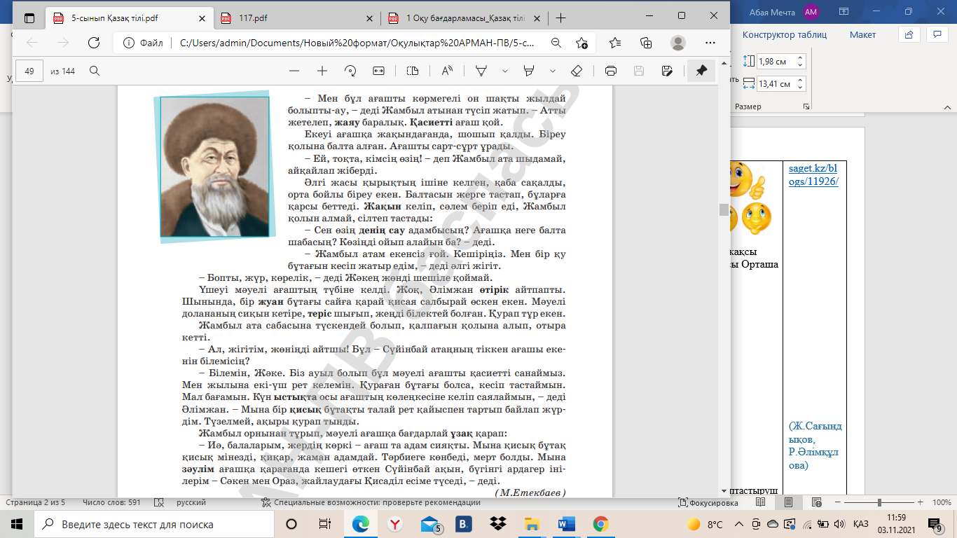 ҚБ ОҚЫЛЫМНАН КЕЙІН. 2-тапсырма. Берілген сөз тіркестерінің мағыналарын түсіндіріңдер. Оларды қатыстырып, сөйлем құраңдар. Сабасына түсу. Қисық мінез. Мерт болу. Жеңді білектей. Төрт құбылаға жайылу. Балта шабу. Тәрбиеге көнбеу. 3-тапсырма. Оқылым мәтініндегі қою қаріппен берілген сөздердің антонимдерін тауып жазыңдар. Дескриптор: