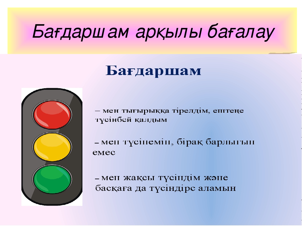 Рефлекся: Тақырыпты оқушылар қаншалықты меңгергенің бағдаршамның бергілі түстері арқылы көрсетеді.