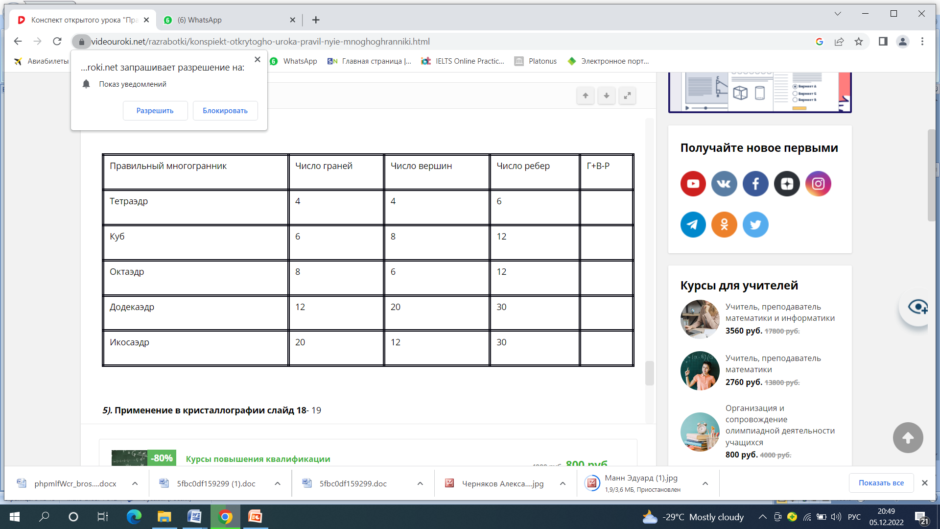 1) Записать определение понятий: многогранника, ребра,вершины, правильный многогранник, выпуклый и невыпуклый многоранник.