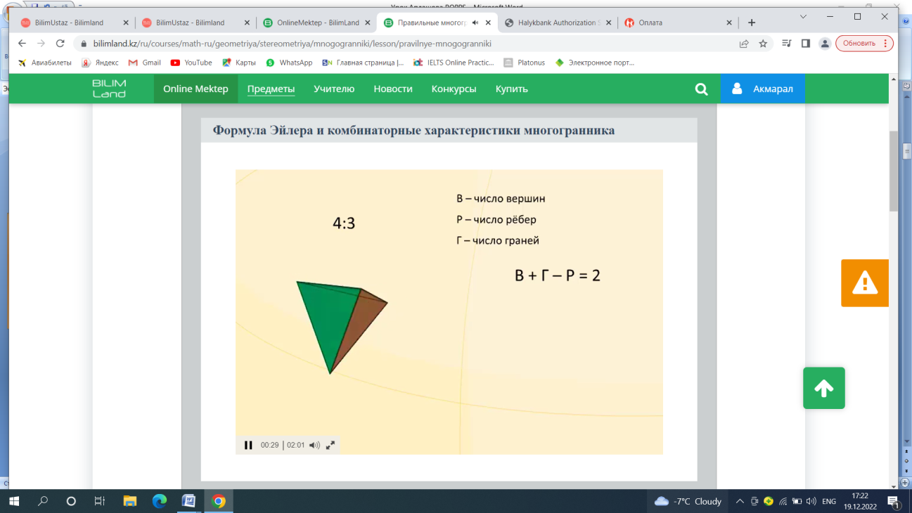 Просмотрите пожалуйста фрагменты видео и ответьте на следующие вопросы: https://bilimland.kz/ru/courses/math-ru/geometriya/stereometriya/mnogogranniki/lesson/ponyatie-mnogogrannika-obshie-svoi-stva-obemov