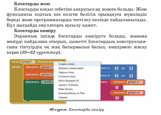 кодтың блоктарымен және циклдарымен мобильді қосымшаны