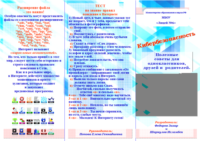 "Кибербезопасность" была разработана памятка, был проведён опрос, в