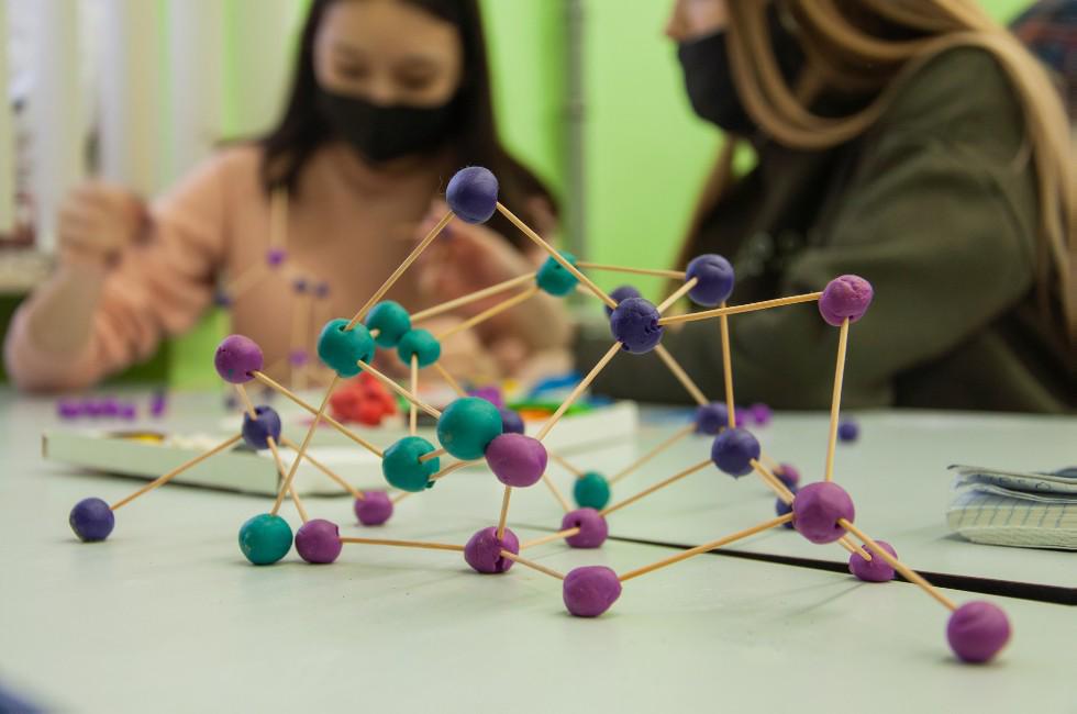 Химия сабағын оқытуда модельдеу элементтерін қолдану мүмкін еместі қолдануға мүмкіндік беретін кең ауқымды дүние .Химия сабағында элементтердің шар өзекті моделі тақырыбын өткенде оқушылардың модельдерді өз қолдарымен ұстап шар өзекті өздері жасай алуына мүмкіндік беру. Ол үшін жасыл, қызы, күлгін ермексаздар және бірнеше таяқшалар алып келіп сабақ барысында оқушыларға таратылалы. Мұғалім сабақты түсіндіруін аяқтап болған соң оқушыларға он минуттай уақыт береді таратылған ермек саз бен таяқшалардан оқушы модель құрастырып шығарады, және оқушы соңында қай заттың құрылысының модельін құрастырды сол бойынша кеңінен ақпарат айтады. (1-сурет).