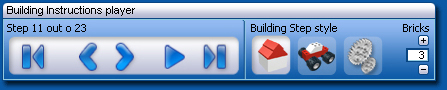 Building Instructions player (Проигрыватель Инструкций для сборки) виден в режиме Building Instructions (Инструкций для сборки). Он позволит пошагово воспроизвести инструкцию для сборки.