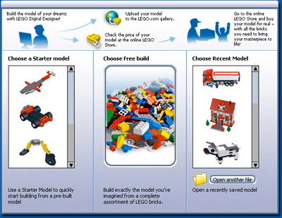 Каждый раз, когда вы запускаете LEGO Digital Designer, перезапускаете программу или начинаете новую модель, вы увидите окно Get Started with LEGO Digital Designer. Здесь вы сможете выбрать следующие опции: