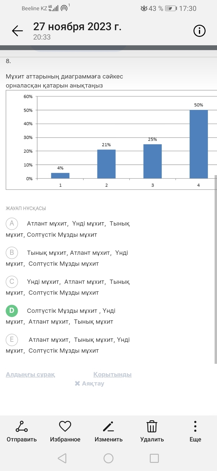 17.Мұхит аттарының диаграммаға сәйкес орналасқан қатарын анықтаңыз