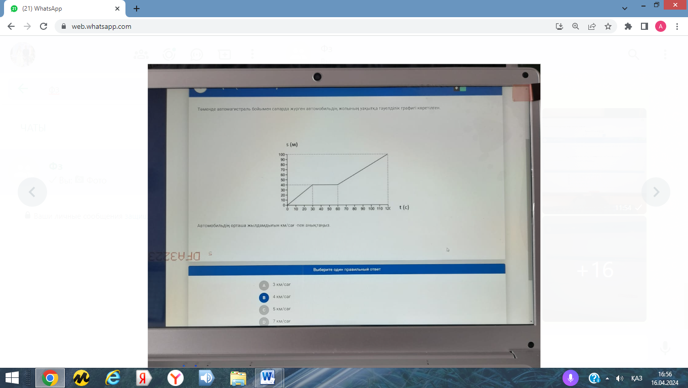 15. Төменде автомагистраль бойымен сапарда жүрген автомобильдің жолының уақытқа тәуелділік графигі көрсетілген.