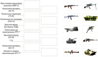Түсіну АӘТД электронды оқулығын пайдалана отырып, бөлімше қару-жарақтарының тактика-техникалық сипаттамаларымен таныстырамын. Мысалы: ЖҰМ-жаяу әскердің ұрыс машинасы Экипажы: 3 адам және 7 десант. Әскери салмағы: 13,8 т. Жылдамдығы: 65 км/сағ. Жүру қышықтығы: 500 км. Қару жарақтары: 30 мм. авт. Зеңбірек, қосарланған 7,62 мм-лік оқшашар, ПТРК 9П135М «Конкурс» Танкіге қарсы қол гранататқышы (РПГ-7) Калибрі: 40 мм. Салмағы: 6,3 кг. Оғының бастапқы жылдамдығы -112-145 м/сек. Ату жиынтығы - 5 оқ. Бұза алатын сауытының қалыңдығы-750 мм-ге дейін. |