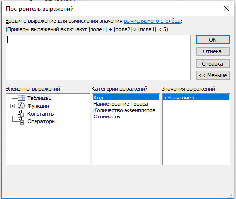 + для добавления значений полей из других таблиц или фиксированного списка данных.