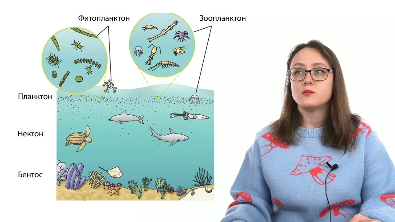 Планктон-қалқып жүретін-А. Беткі ағыстармен бірге қозғалатын алуан түрлі біржасушалы балдырлардан-ұсақ шаяндар, бақалшақтардан тұрады.