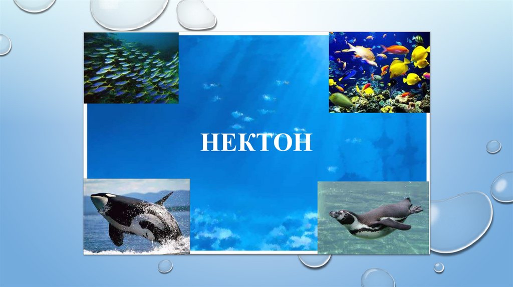 Нектон – жүзіп жүретін – В.мұхит сулары мен оның беткі бөлігінде еркін жүзетін балықтар, теңіз сүтқоректілері, тасбақалары, жыландары, ірі моллюскалар құрайды.