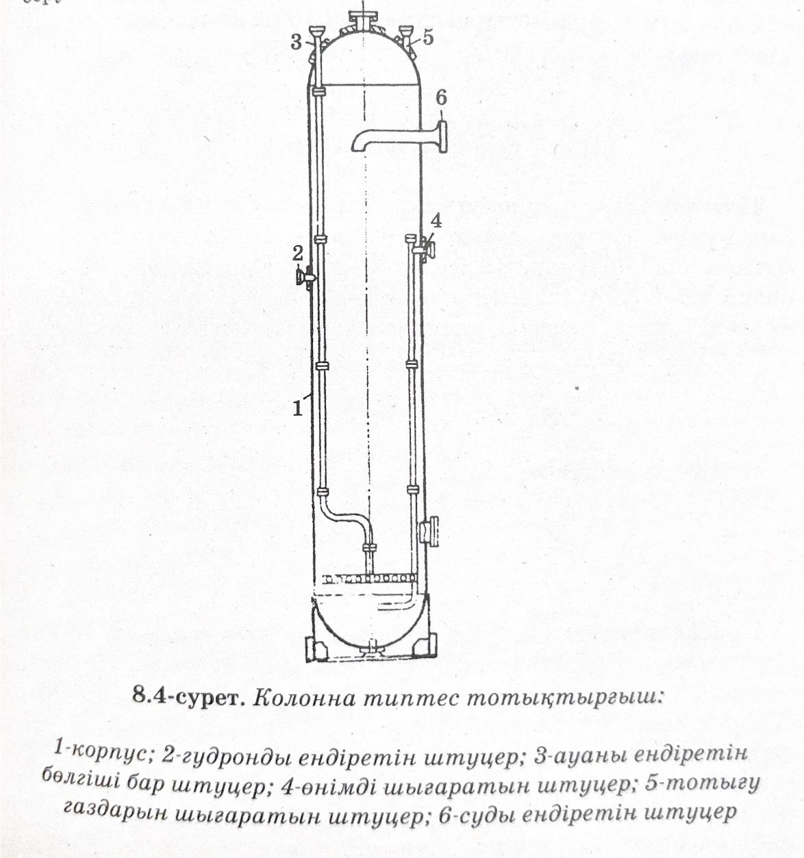 колоннаның диаметрі 3-3.4 м, биіктігі 23м. Битум деңгейі