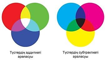 тапсырма. Түстерді араластыру арқасында қандай жаңа түстер шығатынын анықтап, бояңыз.