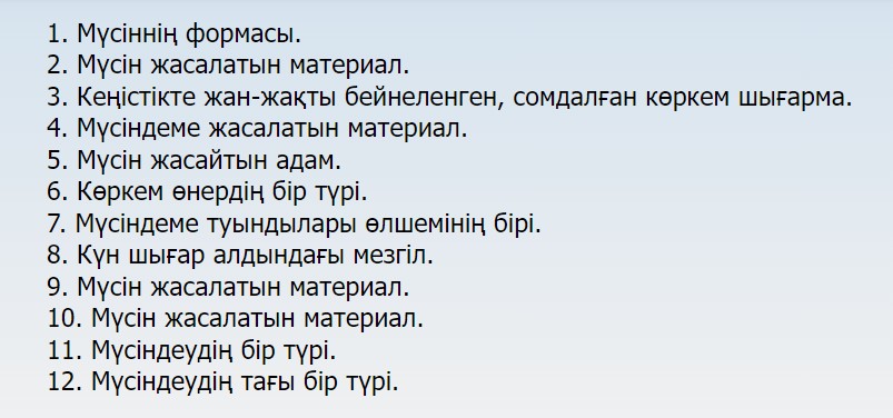 тапсырма. Мүсін түрлерін анықтаңыз