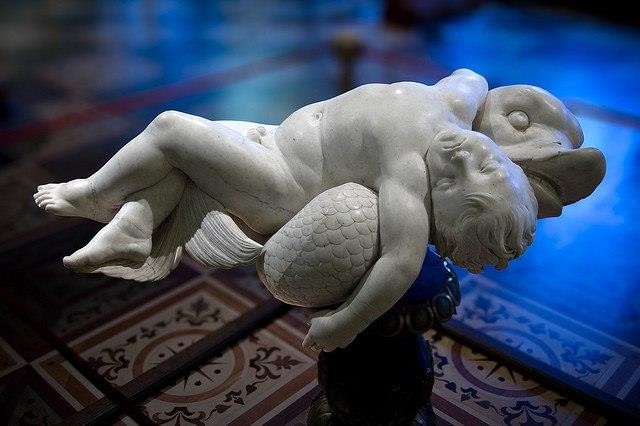 Мүсінді Рафаэльдің көптеген шәкірттерінің бірі, мүсінші Лоренцо Лоренцетто (1490-1541) мұғалімнің суреті бойынша жасаған.Тіпті ежелгі гректерде дельфиндердің оларды қиындықтан құтқарған адамға алғысы туралы көптеген аңыздар болған.