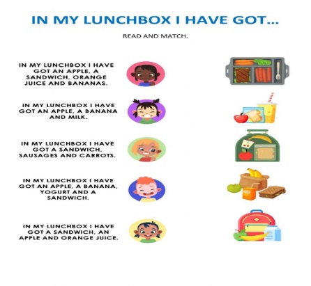 Sts. name food in lunch boxes and organise theirs.