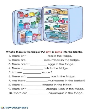 Students complete the sentences with some and any Students mke a Syrne and speak about it |