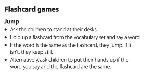 Organization moment : - Greeting.(Whole class, Individually) - Introducing themselves using new words from the previous lesson: I’m … and I have a father, mother and 2 brothers (for example) Warm-up Teacher play “Jump” using the words from the previous lessons