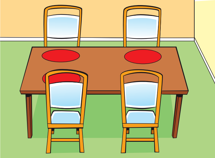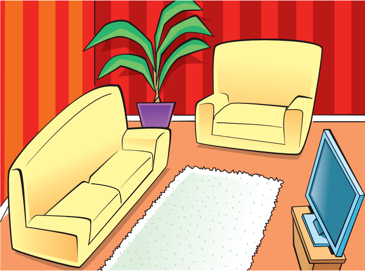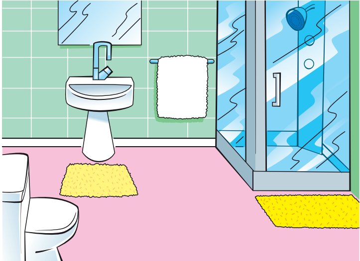Students look at the pictures of the home words. Listen. Repeat after teacher. Put the flashcards inside in appropriate places. Transcript kitchen, living room, dining room, bedroom, bathroom bathroom, kitchen, living room, bedroom, dining room Listen and repeat. kitchen, living room, dining room, bedroom, bathroom |