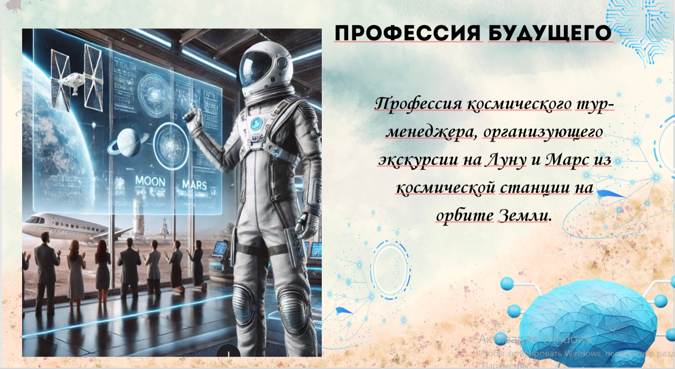 Ребята, мы познакомимся с профессией будущего. Представьте, вы станете космическим турменеджером и будете организовывать экскурсии на Луну и Марс с космической станции на орбите Земли. Вы будете планировать маршруты, заботиться о безопасности туристов и делать их путешествия незабываемыми. Давайте узнаем, что для этого нужно и какие навыки пригодятся в будущем! |