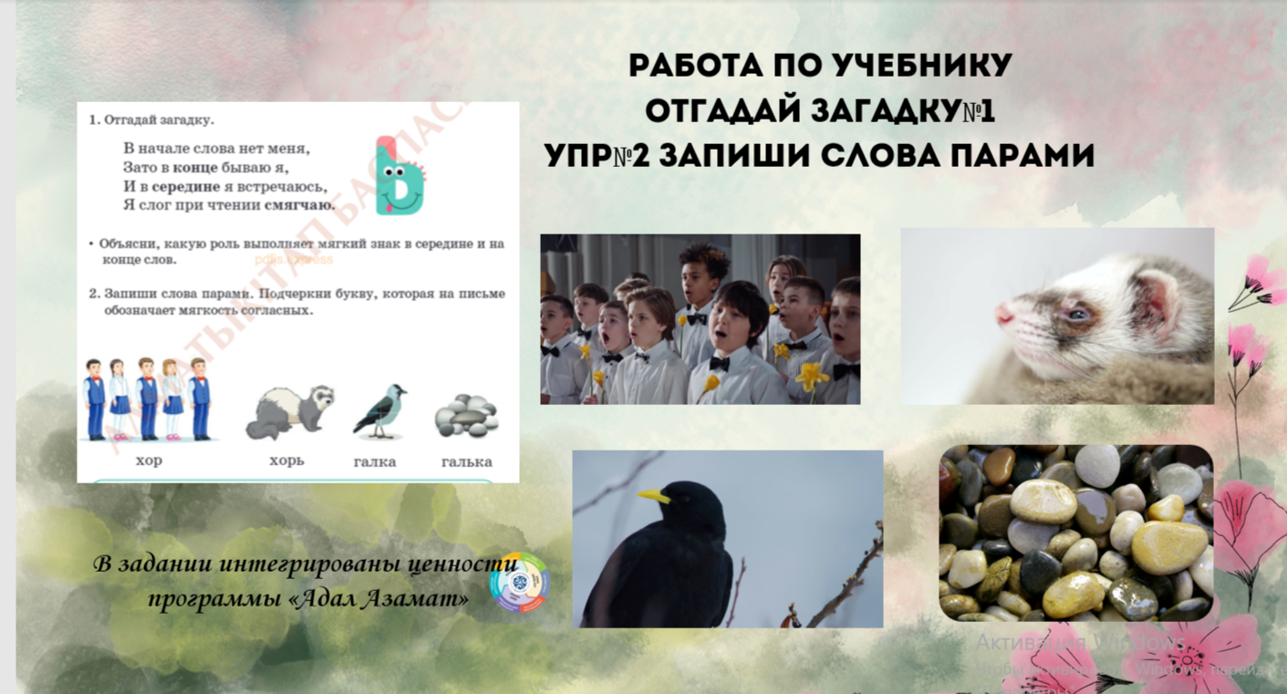 В рамках программы «Адал Азамат» по ценности воспитания «Независимость и патриотизм» разработано задание на тему «Мягкий знак на середине и в конце слова»