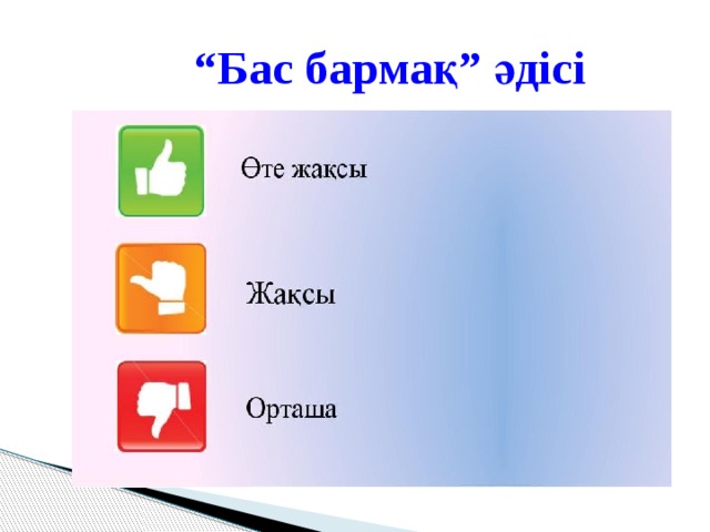 Оқушылар өз жұмыстарына қаншалықты риза болғандықтарын көңіл күй бас бармақ арқылы көрсету.