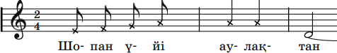Əуезді, созылыңқы «а, о, у, и» дыбыстарын немесе «ля-ля», «ле-ле» буындарын, сөздің аяғында келетін дауыссыз дыбыстарды дəл де анық орындауға талпынады. |