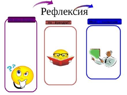 Рефлексия Сабақта не сәтті шықты? Қай тапсырма қиын болды? Сабақта нені әлі де жақсарту қажет? |