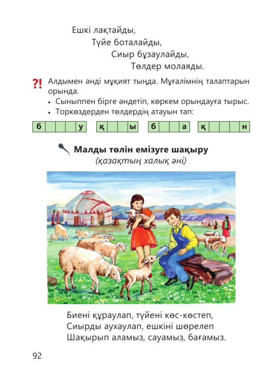 «Малдың төлдеуін қалай атайды?»әнін үйренді.