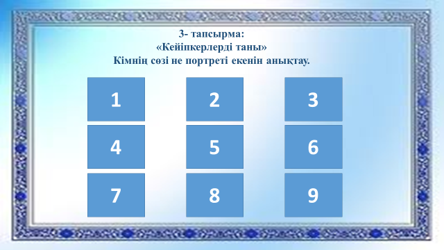 «Кейіпкерлерді таны» Кімнің сөзі не портреті екенін анықтау.