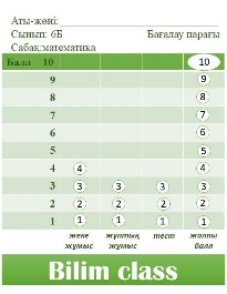 Сабаққа қатысқанына, белсенділігіне қарай мұғалімнің бағалауы.