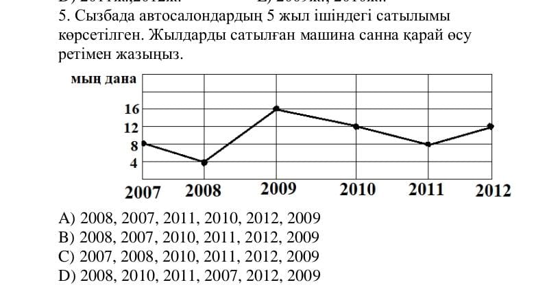 Жылдарды сатылым санына қарай өсу ретімен орналастыр.