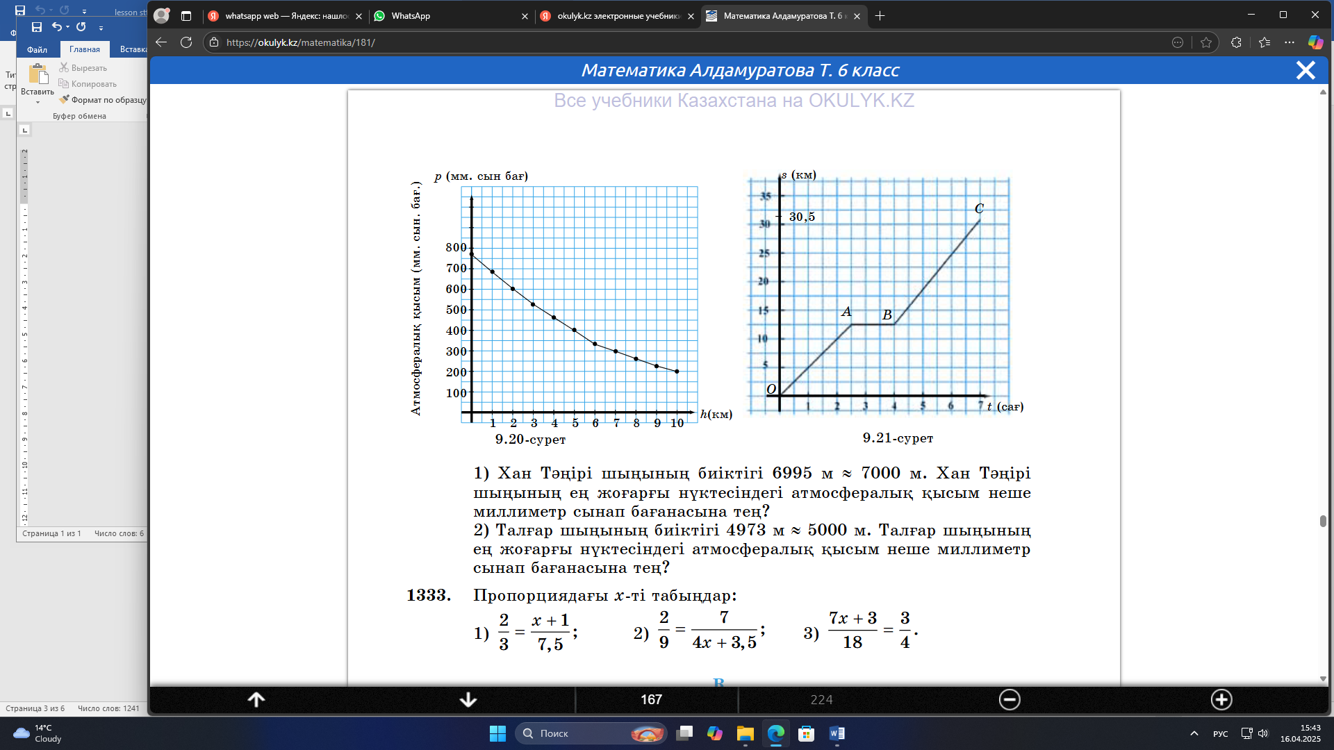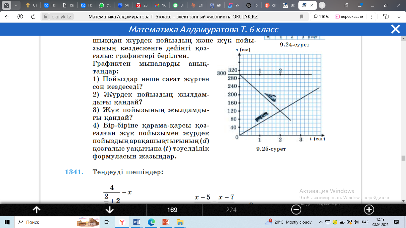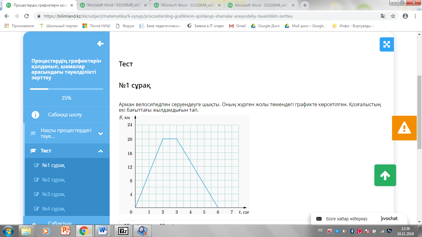 Оқушылар берілген тапсырманы оқып, графикке қарап сұрақтарға жауап береді.