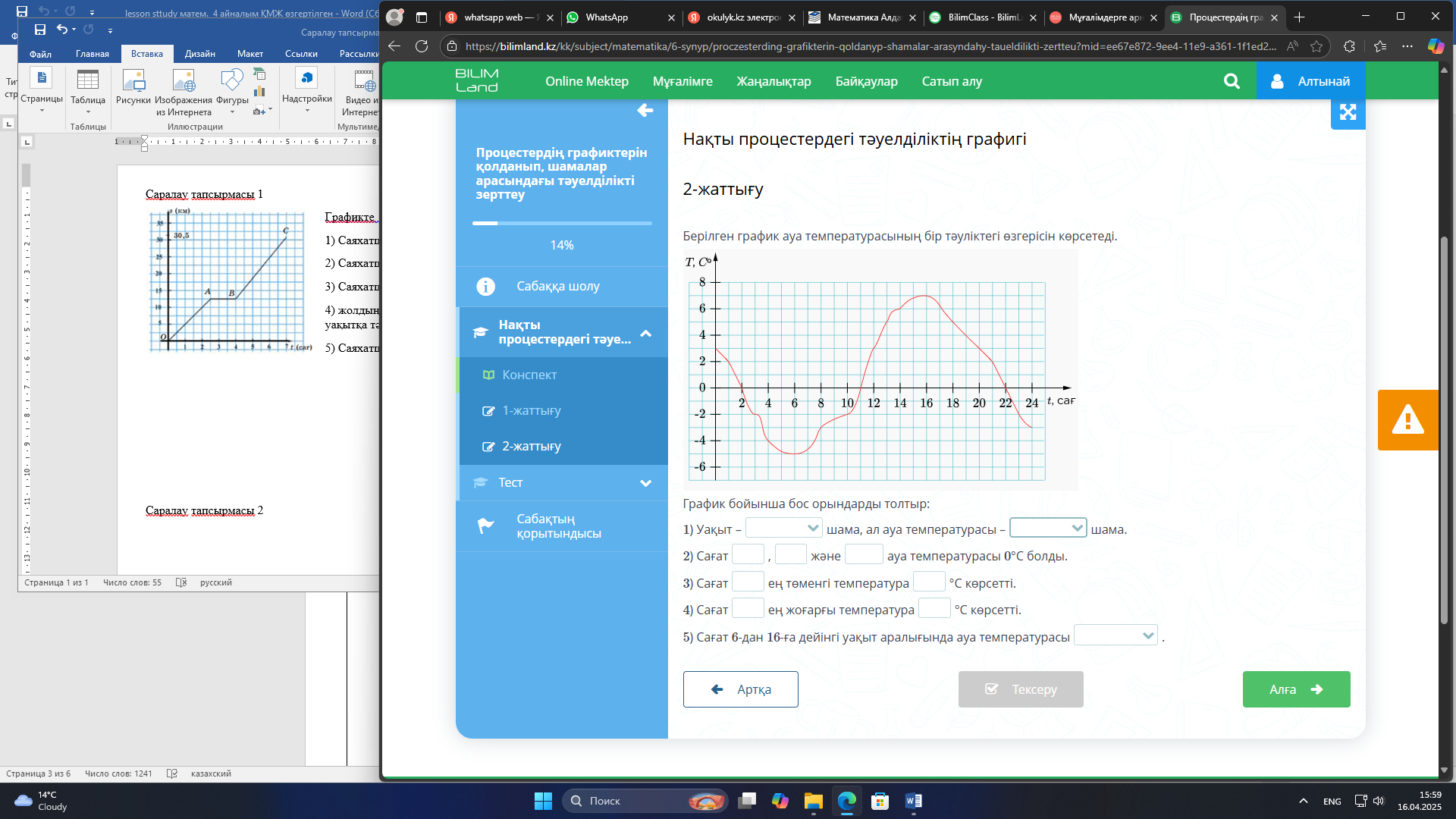 болды.4.Сағат 6:00 мен 18:00 аралығында температураның орташа мәні 11,5