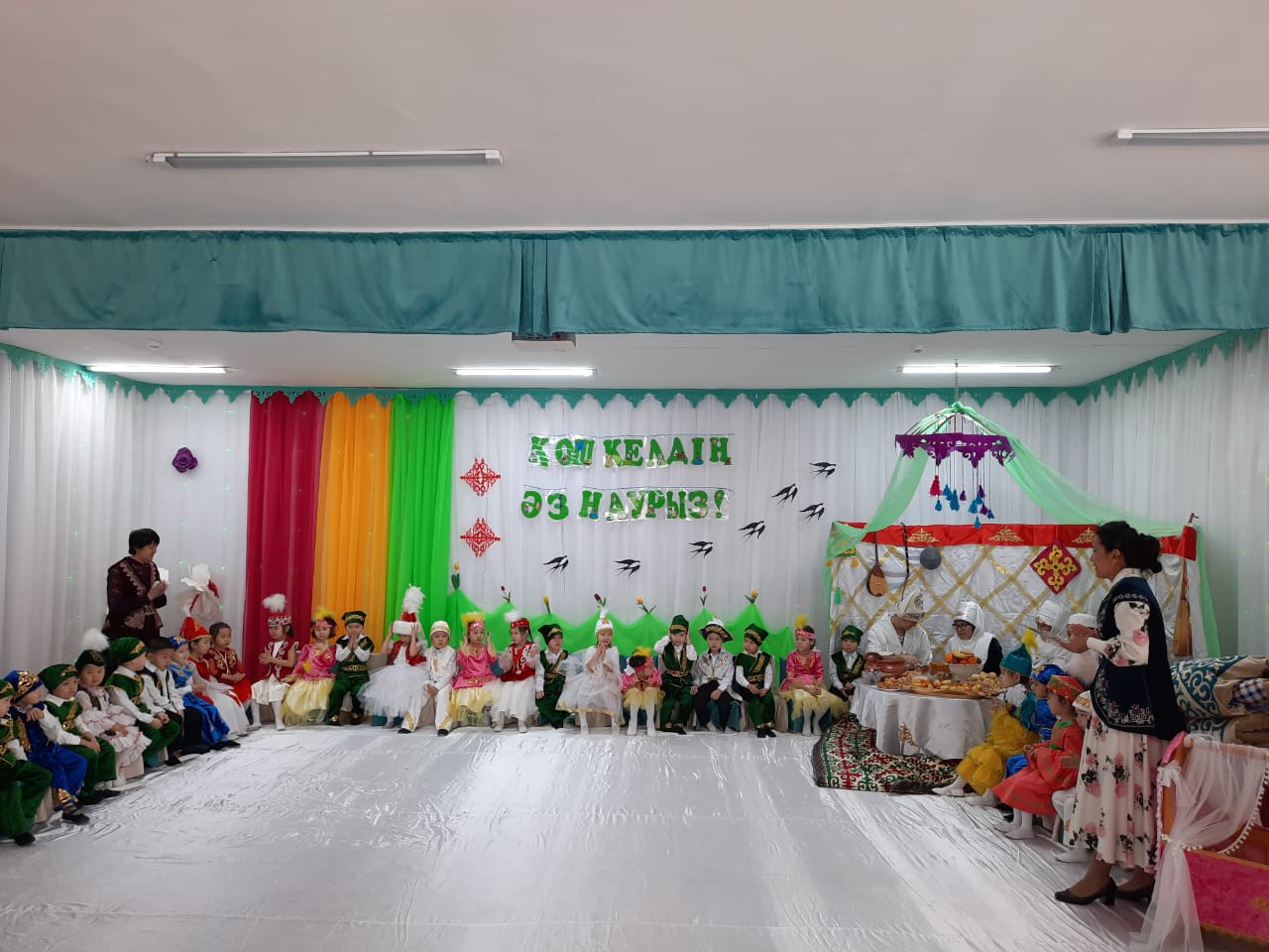 Өтетін орыны, жабдықталуы: 22-наурызға сай безендірілген музыка залы Қазақтың кигіз үйінің көрінісі, үй жиһаздары, бесік, дөңгелек жер үстелде жайылған дастархан, домбыра, қамшы.