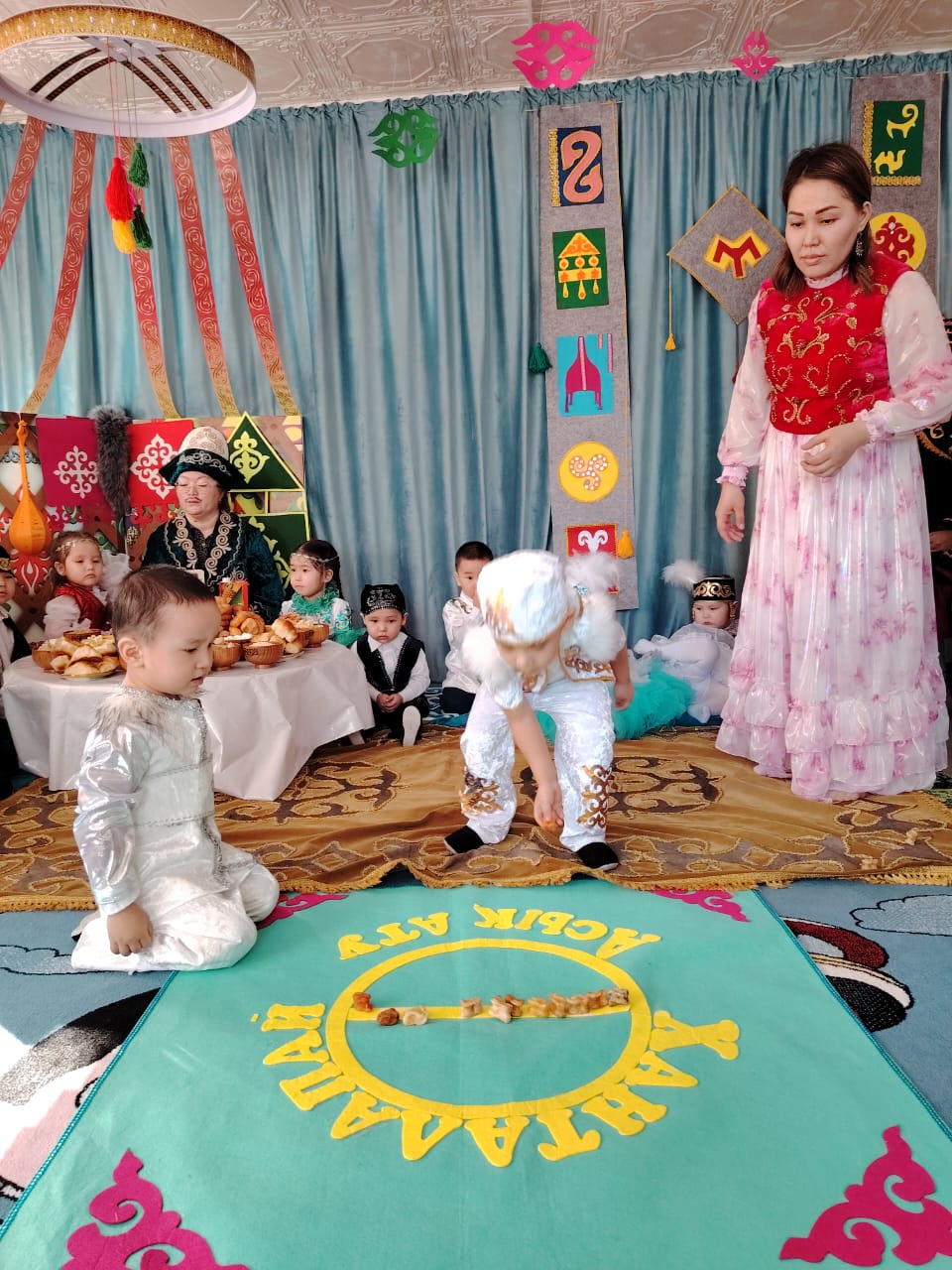 Мақсаты: Ұлыстың ұлы күні наурыз мерекесін тойлау. Ұлттық салт-дәстүр, әдет-ғұрып жайында қарапайым түсінік беру. Ата-бабаларымыздың кейінгі ұрпаққа мирас еткен асыл мұрасын қадірлеп, қастерлеуге, қасиетін түсінуге баулу. Ұлттық дәстүрдің ерекшеліктерімен таныстыру. Қазақ халқының салт-дәстүрлерін балалардың бойына сіңіру. Балаларды ұлттық салт-дәстүрді, мұраларды танып-білуге, сыйлап, түсінуге үйрету. Балалардың ой-қиялының, шығармашылық белсенділігінің және бейнелі ойларының дамуына ықпал ету.