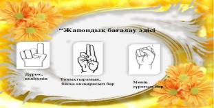 Мұғалім оқушыларды «Жапондық бағалау» әдісі арқылы бағалайды. Яғни «Дұрыс келісемін». |