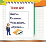 Қалыптастырушы бағалау . «Тілек беті» әдісі арқылы бағаланады.Оқушыларды ынталандырады және бір-бірімен байланыс орнатады.