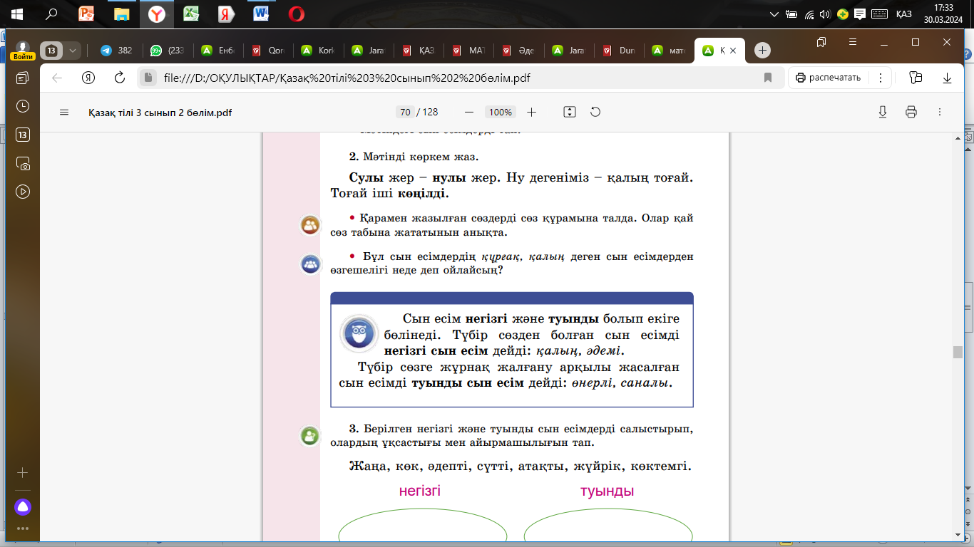 Негізгі және туынды сын есім 106 сабақ ҚМЖ 3 сын