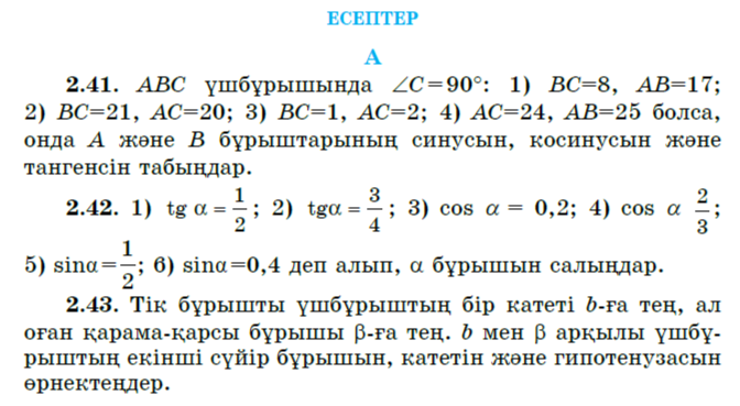 Тікбұрышты үшбұрыштың қабырғалары мен бұрыштары арасындағы қатыстар |
